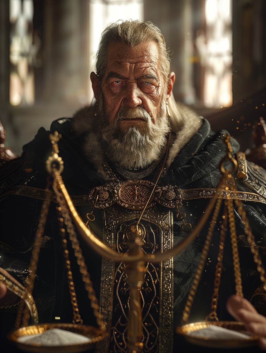 In the halls of justice, the stoic dwarf judge Thrain adjudicates cases with a sense of duty. His rulings are based solely on the law, without consideration for personal feelings, ensuring that every decision reflects the established codes of his community.