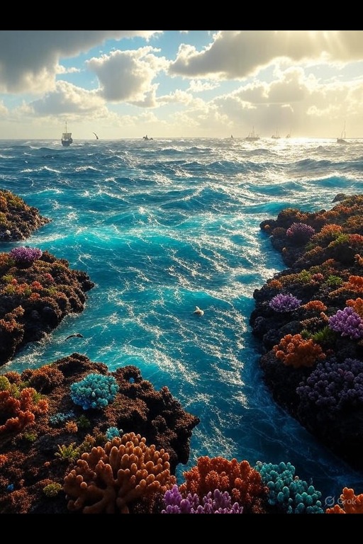 The weather above the ocean can be as unpredictable as the depths below. Calm, sunny days can quickly turn to fierce storms, with towering waves and howling winds that challenge even the most skilled of navigators. Coastal settlements often rely on the ocean for their livelihoods, engaging in fishing, trade, and exploration, while also offering refuge to weary travelers. The salty air is filled with the cries of seabirds, and the scent of brine mingles with the smoke of cooking fires.