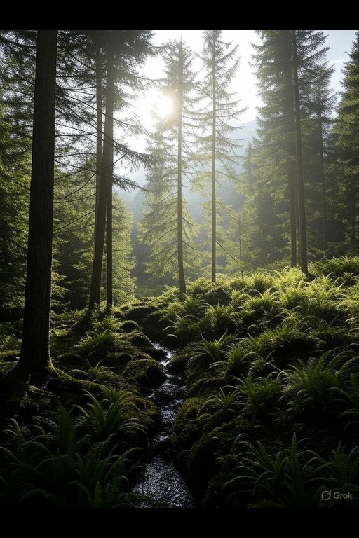 The climate in these regions typically features moderate rainfall, ensuring that streams and rivers flow steadily through the forest, providing water for both flora and fauna. The combination of moist air and rich soil promotes a lush undergrowth that supports a diverse range of species. Squirrels scamper through the branches, while deer graze peacefully in clearings, and the calls of owls and songbirds echo through the trees, creating a symphonic backdrop to the forest's tranquility.