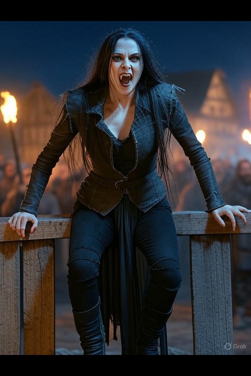 In a chaotic brawl within a tavern, a Brujah warrior leaps into the fray, her fists flying as she takes on multiple opponents. Her wild laughter rings out, a testament to her enjoyment of the fight and her fearless nature.