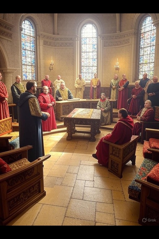 A noble family seeks to expand their influence by marrying into the high priesthood. A rebellion brews in the outskirts as dissenters challenge the divine authority of the current Grand Duchess. A traveling cleric uncovers corruption within the tax collection process. Local artisans create sacred items to curry favor with the ruling clergy. A candidate for succession must prove their worthiness through a series of divine trials. A mysterious prophecy disrupts the balance of power between the noble houses and the clergy.