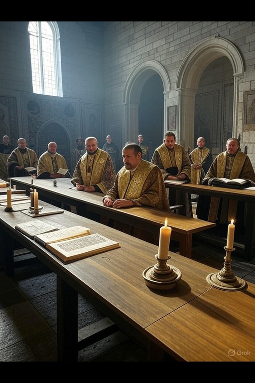 A dissenting sect within the theocracy is accused of heresy and faces harsh penalties. A high priestess seeks to unite feuding factions by proposing a sacred festival, hoping to restore harmony. A local tax collector struggles with balancing the church's demands and the impoverished commoners' needs. A group of young scholars question the interpretations of religious texts, sparking debate among the clergy. A regional leader attempts to impose stricter adherence to doctrine, inciting protests among the populace.