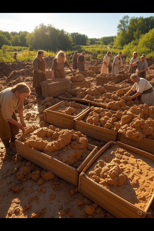 Alluvial Clay is a natural resource formed from the sedimentation in wetland environments, primarily found along riverbanks and floodplains. It is collected from outcrops and bars, where it is graded and sorted based on quality. This versatile material is essential in various industries, including masonry, pottery, and construction. Additionally, it serves as a valuable trade good, often sought after for its utility in crafting durable products.
