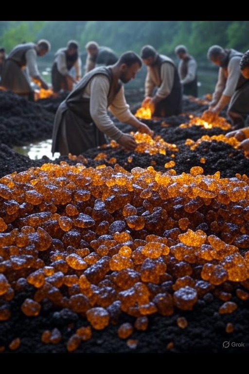 Amber Fragments are the remnants of ancient organic matter, typically found embedded in wetland environments. These minerals are extracted from beds and terraces, where they are quarried or scooped directly from the earth. The fragments vary in size, with larger blocks often being cut for use in construction, while smaller pieces may be refined into glass or ceramics. Their versatility makes them valuable trade goods across various industries.