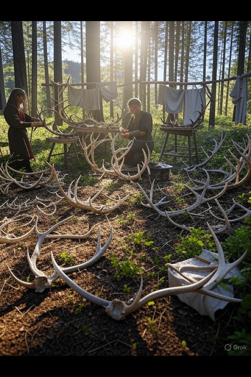 Antler Crowns are unique formations crafted from the shed antlers of various forest-dwelling creatures. They are prepared meticulously under strict apothecary guidelines, ensuring both proper dosage and purity. The drying process takes place on racks, using clean cloths to guard against contamination. This careful method of preparation makes Antler Crowns valuable in various industries, particularly apothecary and ritual crafting.