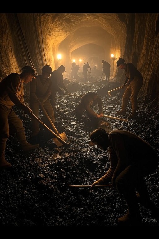 Bituminous shale is a sedimentary rock known for its rich organic content and energy-producing properties. Extracted from low galleries and seams, this mineral is carefully aired to mitigate dampness and harmful fumes. The blocks are dried and graded, primarily serving as a fuel for various industrial processes. Its versatility extends beyond energy production, finding uses in smelting and the creation of pigments and trade goods.