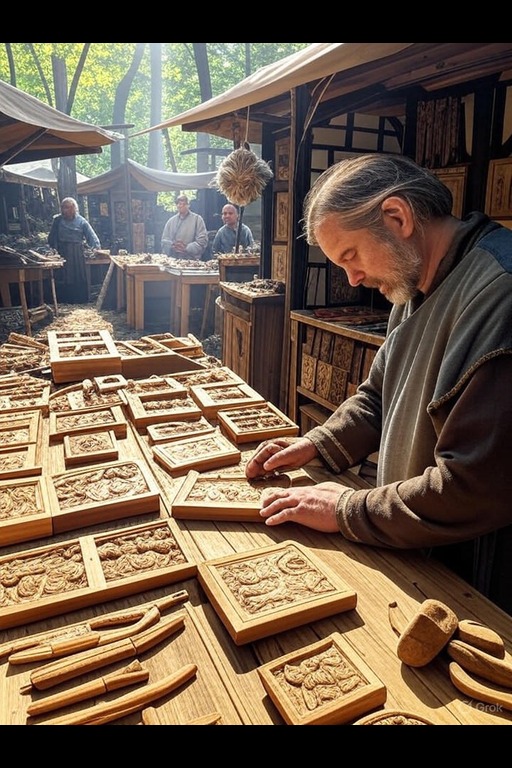 Carved Wooden Icons are cherished items crafted from the rich timber found in temperate deciduous forests. These symbols hold significance in various trades, often representing local lore, craftsmanship, or artisan skill. Market towns along well-traveled roads thrive on their trade, ensuring these icons are both accessible and sought after. They command good prices, especially when sourced from reputable artisans known for their intricate designs and quality materials.