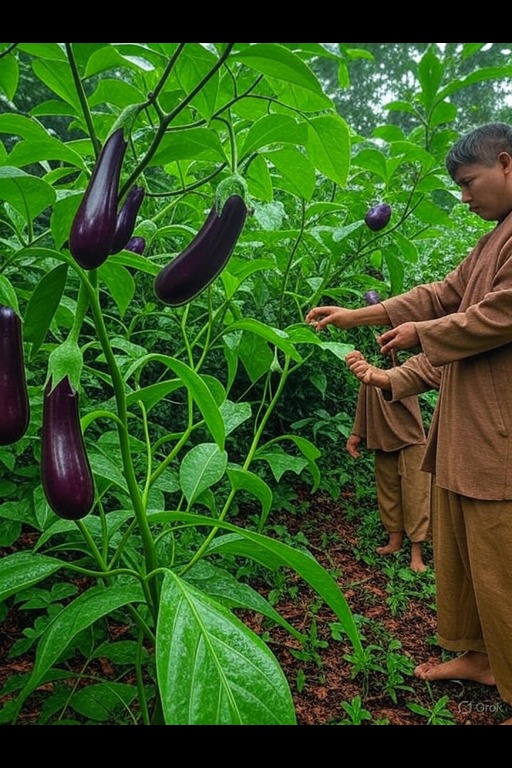 Eggplant is a versatile crop cultivated in the lush environments of tropical wet forests, where warm, humid conditions favor its growth. The quality and yield of eggplant are significantly influenced by seasonal farming practices and the fertility of the soil. Harvested fruits are often traded with neighboring regions, enhancing both local diets and economies. Preserved forms are particularly valued, serving as essential provisions for long journeys and seasonal storage.