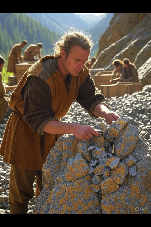 Flint Shards are fragments of hardened silica, often collected from natural outcrops or produced during the shaping of larger flint masses. This resource is graded on site, as only the finest pieces are deemed suitable for various applications. Once selected, these shards are packed carefully into crates for transport, while the finer particles are dried and bagged for use in kilns or as mortar. Their versatility makes them a key component in several industries, particularly masonry and pottery.