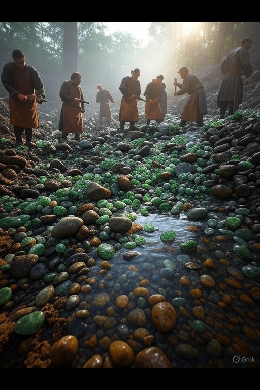 Jade Pebbles are valued for their rich coloration and smooth texture, often found in narrow veins within temperate rainforests. These stones reveal themselves through diligent chiseling and washing processes employed by skilled miners. Although they can fracture easily, careful handling allows for the extraction of sound crystals. The mining of these pebbles supports various industries, particularly in jewelry and trade.
