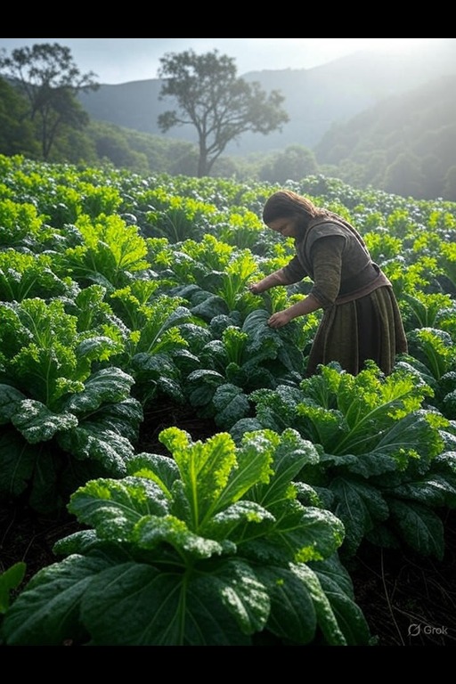 Kale, a member of the cruciferous family, is a resilient crop that flourishes in the cool, damp conditions typical of temperate rainforests and taiga biomes. Its ability to withstand frost makes it particularly appealing to farmers in these regions, as it can be harvested at various times throughout the growing season. The leaves, ranging from dark green to purplish hues, are rich in nutrients and can be utilized in a diverse array of culinary applications. Due to its robust nature, kale is often considered a staple among the crops cultivated in these locales, providing sustenance for both local communities and trade partners. Cultivation practices for kale are generally straightforward, relying on the careful observation of seasonal cycles and weather patterns. Farmers employ traditional tools to prepare the soil, sow seeds, and tend to the plants as they grow. The close relationship between the farmer and the land is essential, as successful harvests are contingent upon understanding the nuances of the environment. Harvesting kale requires skillful timing; farmers must be attuned to the weather, as rain and frost can significantly affect both the quality and quantity of the yield. Once harvested, the greens are quickly washed and processed to ensure freshness and minimize spoilage. The versatility of kale extends beyond immediate consumption. It can be transformed into preserves, enhancing its shelf life and allowing for enjoyment throughout the year. Additionally, kale leaves can be dried or powdered to create nutritious beverages or incorporated into other food products, widening its appeal in food markets. As a trade good, it often finds its way into distant lands, contributing to the agricultural economy of the region. Kale’s enduring popularity stems not only from its nutritional benefits but also from its adaptability to various culinary traditions, making it a beloved ingredient across diverse cultures.