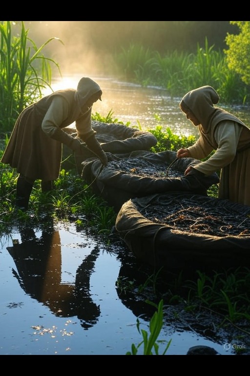 Leech beds are found in the depths of wetlands, thriving within the rich, mucky substrate. Gathered with minimal tools, they offer a sustainable resource for various industries. Only sound, healthy material is retained, while the rest is left undisturbed to maintain the ecosystem. Their versatility extends from crafting to construction, making them valuable in trade as well.
