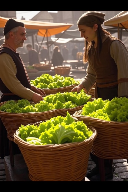 Lettuce is cultivated in temperate wet grasslands, where favorable climate and rich soils contribute to its growth. Seasonal methods of planting and harvesting significantly influence both the quality and yield of this versatile crop. Surpluses often find their way into trade, with neighboring regions eagerly exchanging goods for fresh stock. In addition, preserved forms of lettuce are a popular choice for caravans embarking on long journeys and for stocking up during the winter months.