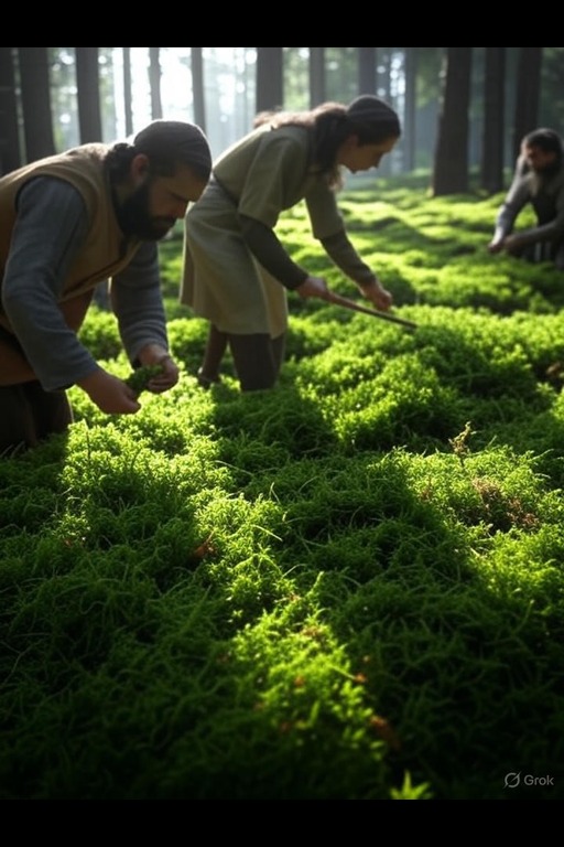 Moss mats are versatile natural resources found in temperate rainforests. They are harvested, cut, and dried into manageable lengths for various practical applications. Once processed, these mats are bundled tightly and stored in a manner that preserves their integrity and prevents mold growth. Their unique texture and durability make them invaluable in numerous industries, particularly in weaving and basketry.