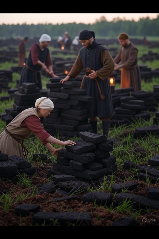 Peat is a naturally occurring accumulation of partially decayed organic matter found in temperate wet grasslands and other moist biomes. This rich material is vital for various local industries, as it serves as an essential fuel source and soil amendment. Harvesters skillfully gather peat, taking care to preserve the delicate ecosystem in which it thrives. Settlements often emerge near abundant peat deposits, fostering trade and craftsmanship reliant on this versatile resource.