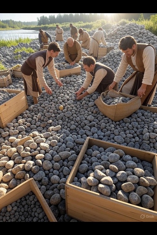 Pebble Aggregate is a versatile resource found in grasslands, where it is often excavated or collected from natural outcrops and riverbanks. This material is carefully graded at the site of collection, with useful pieces set aside for various applications. The larger fragments are typically packed into crates for transport, while finer particles are dried and bagged, commonly intended for use in kilns or as mortar. Its widespread utility makes it a cornerstone of several industries, including masonry and construction.