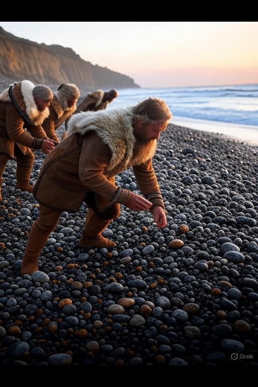 Pebble beaches are a distinctive feature of the polar desert, where the harsh environment meets the sea. These shorelines consist of smooth, rounded stones, shaped by relentless waves and the elements. Harvesters adeptly gather these pebbles, balancing their efforts with the natural replenishment of the area. As a vital resource, pebble beaches play a crucial role in local crafts, trade, and construction industries, often located near settlements reliant on this natural bounty.