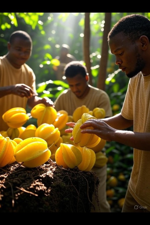 Starfruit is a distinctive, waxy fruit characterized by its ribbed surface and crisp flesh that offers a delightful tart-sweet flavor. This fruit is sensitive to handling, bruising easily, which necessitates careful harvesting techniques to ensure optimal quality. Typically found in lush seasonal rainforests, it thrives in the warm, humid climate of its environment. Starfruit plays a versatile role across various industries, particularly in cuisine and trade.