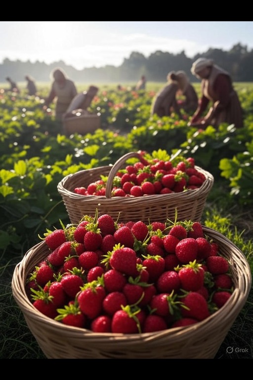 Strawberries are a beloved cultivated fruit, known for their vibrant color and sweet flavor. Grown in temperate rainforests, these berries thrive in carefully tended rows where humidity and shade are meticulously managed. Harvesting strawberries is a labor-intensive process, as they are picked by hand to avoid bruising. Once gathered, the fruits are quickly sorted and cooled to maintain freshness before being transported to markets and consumers.