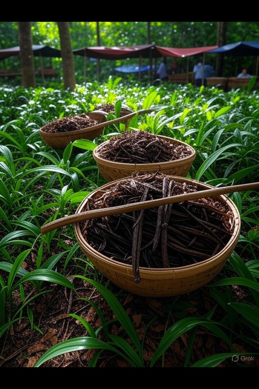 Vanilla is a highly sought-after resource cultivated in tropical wet forests, where the climate and soil conditions are ideal for its growth. Seasonal methods of cultivation significantly influence both the quality and yield of the vanilla pods, leading to variations in flavor and aroma. Surpluses from harvests are often traded with neighboring regions, enhancing its presence in various markets. Caravans particularly value preserved forms for their durability during long journeys and for winter storage.