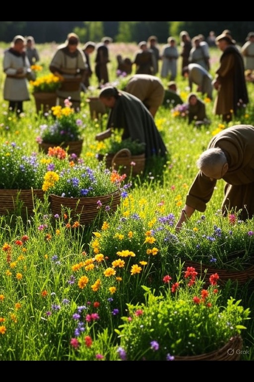 Wild herbs are a vital resource found in temperate dry and wet grasslands. These plants flourish in a variety of conditions and are harvested by skilled gatherers who understand seasonal patterns. They play a crucial role in local economies, supporting herbalism, culinary arts, and medicine. Many communities thrive near abundant sources of these herbs, which are essential for both trade and daily living.